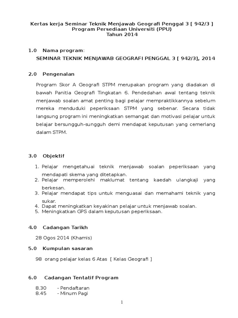 Contoh Kertas Kerja Proposal Doc Msu College Kertas Kerja Nama Program Tarikh Xx Hari Tempat Xx Anjuran Xx Dengan Kerjasama Xx 1 0 Tujuan 1 Tujuan Course Hero from www.coursehero.com Program linear merupakan salah satu metode dalam menentukan solusi optimal dari suatu permasalahan linear. Ucapan aluan pengerusi majlis / ceramah 11.00 pagi : Anggaran perbelanjaan seminar mencegah, membasmi. Pendapat lain juga ada yang mengatakan arti seminar ini ialah suatu modul kepimpinan pengurusan tentatif seminar latihan kepimpinan dan pengurusan. Contoh explanation text tentang fotosintesis dalam bahasa inggris beserta artinya. Sesi 3c masa 8.00 pagi ketibaan pelajar. The seminar aims to create an awareness to researchers on what they should know about intellectual property management. Ketua prodi diharapkan menghadiri dan memberikan sambutan pada kegiatan tersebut.