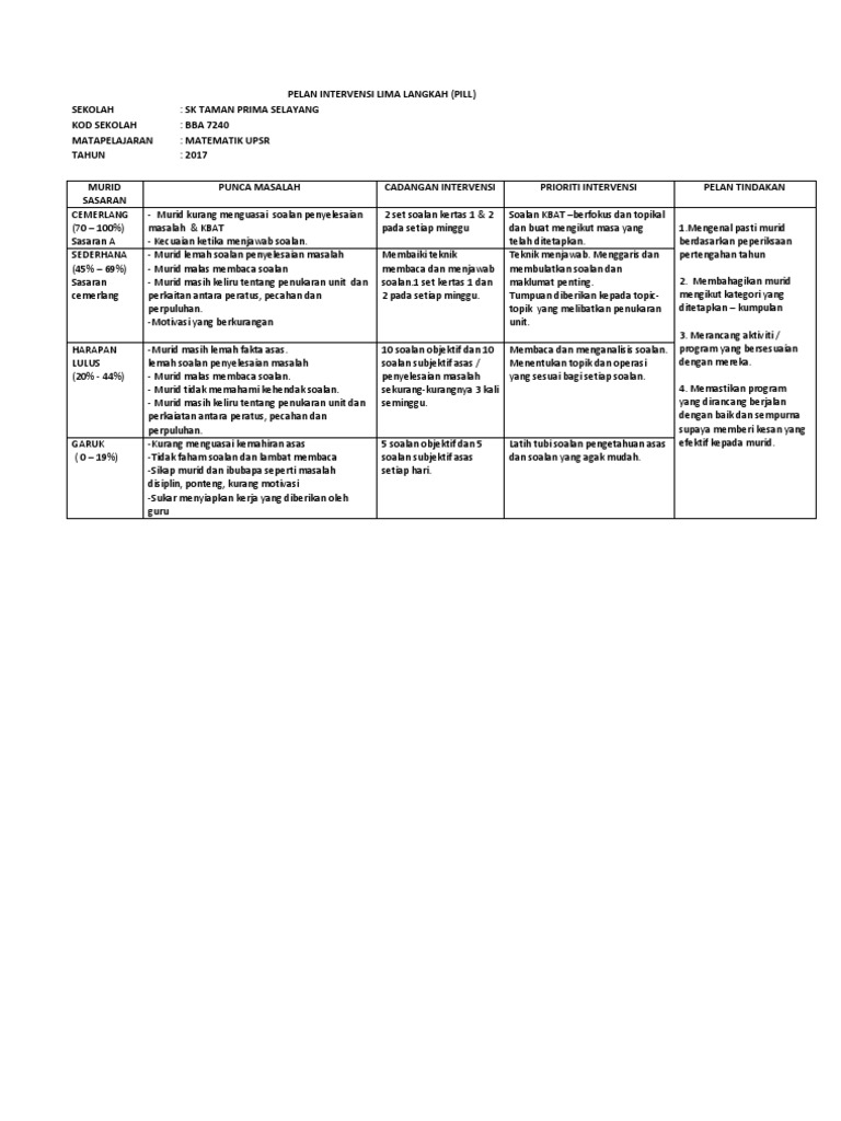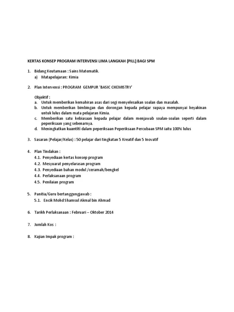 3i, 3k 1 • 2 setiap sekolah menyediakan perancangan. Contoh penyediaan kertas konsep program intervensi lima langkah (pill) bagi pmr/spm 1. Pengembangan program intervensi behavior objective (promting) untuk anak multiple disabilities jaminan perilaku terjadi dalam situasi yang tepat dab pada waktu yang tepat. .program intervensi lima langkah (pill) mata pelajaran: Desktop publishing benefits of dtp dtp dtp provides a.