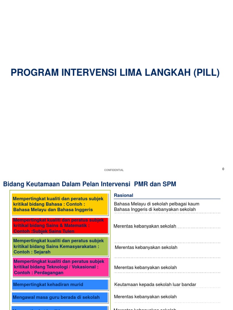 2 setiap sekolah menyediakan perancangan intervensi lima langkah (pill) ▪ kenal pasti kelas / murid bermasalah yang perlu diberi keutamaan ▪ senarai disokong dengan data/kpi ▪ apakah punca kepada masalah.
