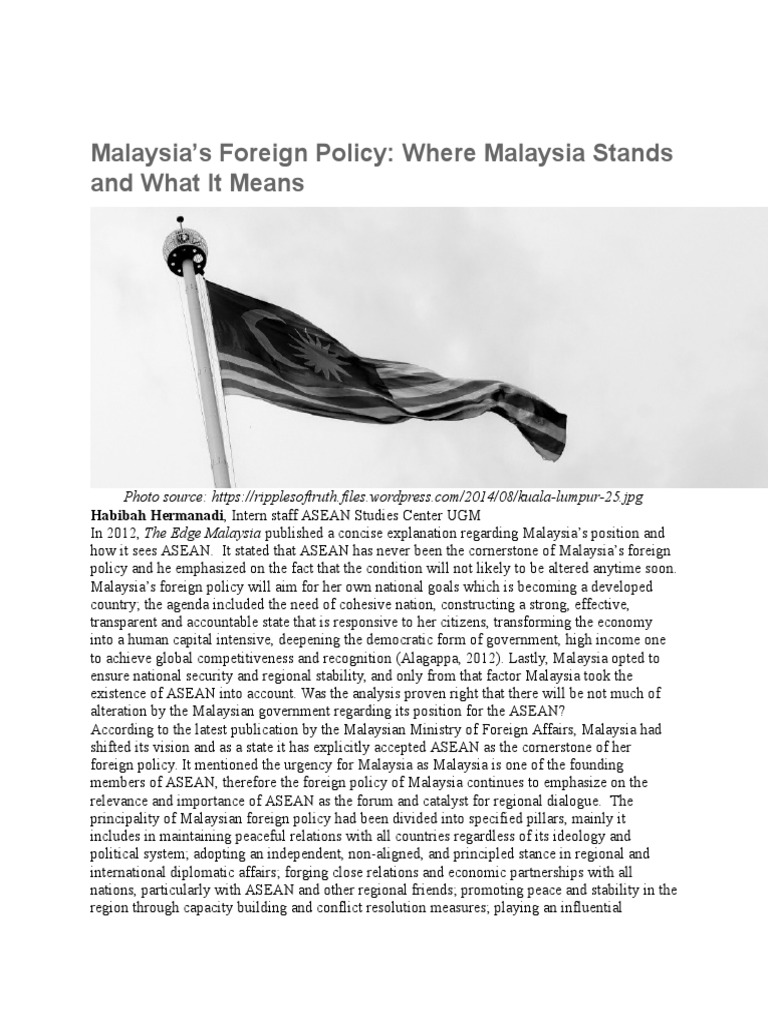 Foreign policy and national budget priorities. Special theme — health and foreign policy health imperatives and foreign policy: Malaysian foreign relations have been influenced by diverse factors, such as anticommunism, anticolonialism, opposition to racial najib has fundamentally repositioned malaysia internationally. Analysis of malaysian foreign policy malaysia once, becoming a land that occupied by british government. After that, malaysia was ruled by malay people using democracy.