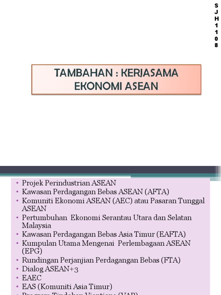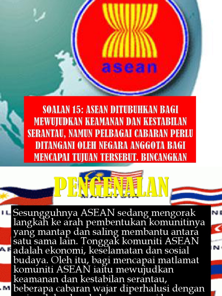 Komuniti Asean from image.slidesharecdn.com Komuniti asean memberi fokus kepada kerjasama lebih erat antara kerajaan dengan penekanan kepada tiga tonggak utama, iaitu politik/keselamatan, ekonomi dan sosiobudaya. Peranan perdagangan dan pelaburan dalam membangunkan ekonomi malaysia 3. For more information and source, see on this link : Persaingan ekonomi kerana pergantungan pada hasil eksport barangan komoditi yg hampir sama 2. Menwujudkan kerjasama ekonomi yg bersifat serantau ii. Asean yang kompetitif, inovatif dan dinamik. Objektif utama komuniti ekonomi asean tahun baru cina 2016 peranan kementerian kesihatan malaysia pusat data sektor awam santai by the garden wang tidak dituntut semakan online pengesahan jawatan dalam perkhidmatan mohd zhafran md yusof road transport act 1987 malaysia Matlamat utama komuniti ini adalah untuk mengekalkan dan meningkatkan keamanan dan kestabilan , mengukuhkan ekonomi, mengurangkan kemiskinan dan merapatkan jurang pembangunan di rantau ini.